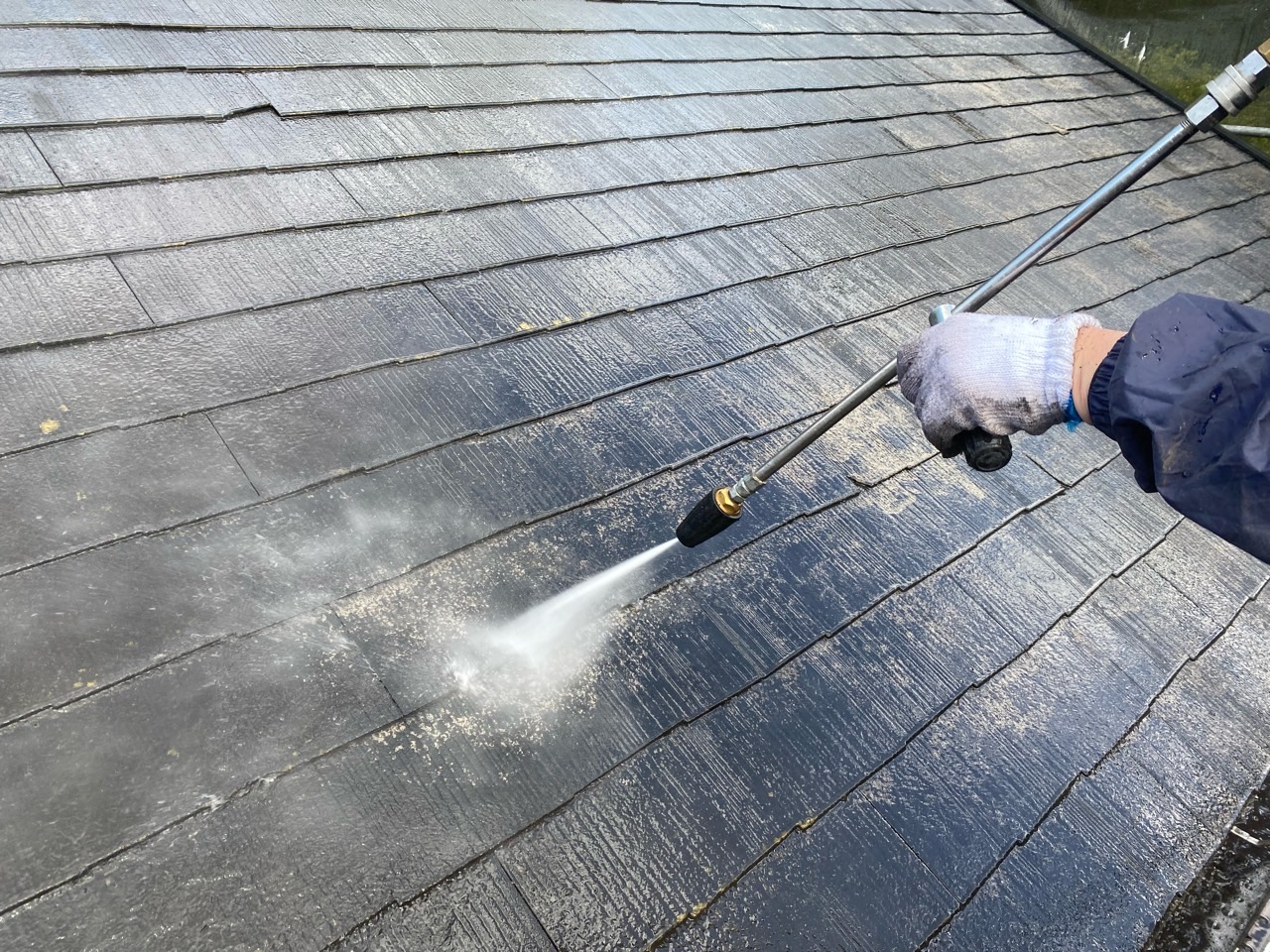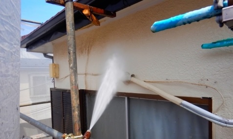 外壁・屋根塗装をする前に汚れを落とすための洗浄をします。