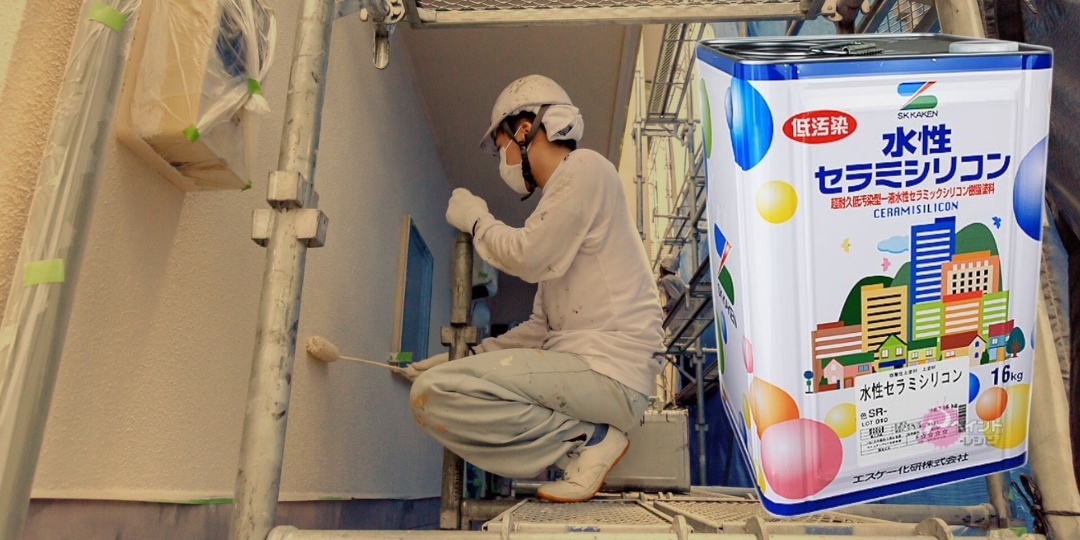 水性セラミシリコンはエスケー化研が開発したセラミック成分とシリコン樹脂を組み合わせた塗料です。