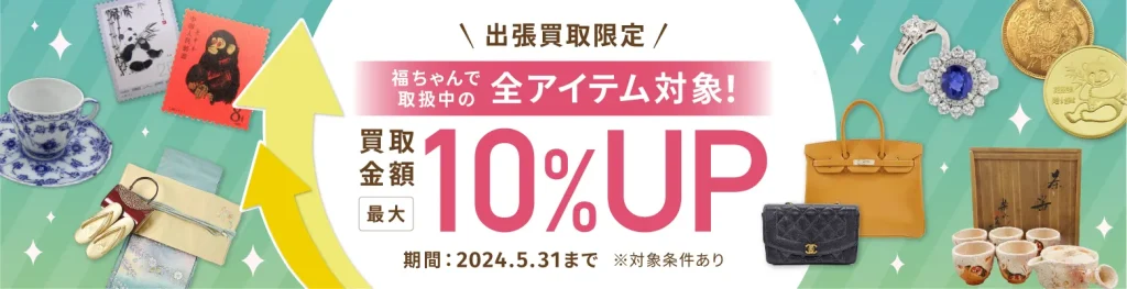 ※出張買取限定で買取金額10,000円以上で5%UP、20,000円以上で10%UP