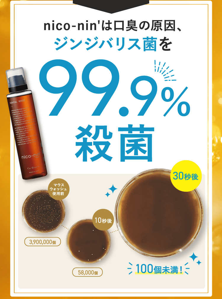 口臭の原因ジンジバリス菌を99.9%殺菌