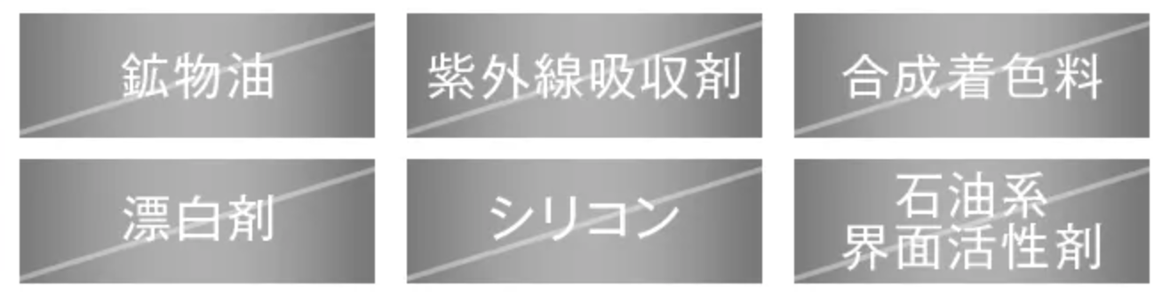 界面活性剤、紫外線吸収剤、鉱物油、漂白剤、シリコン