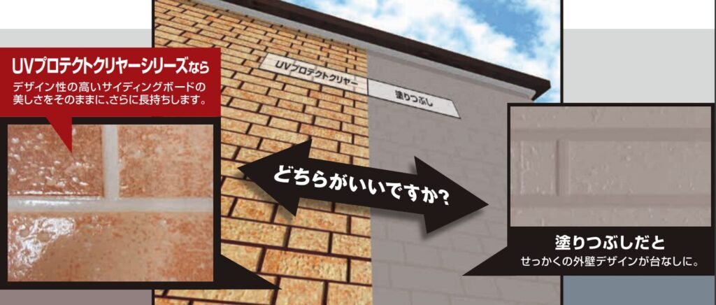 UVプロテクタークリアはタイルなどデザイン性の高い外壁に相性の良いクリヤー塗料です。