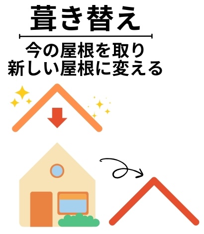 今ある屋根をすべて取り外し、新しい屋根に交換する方法です。