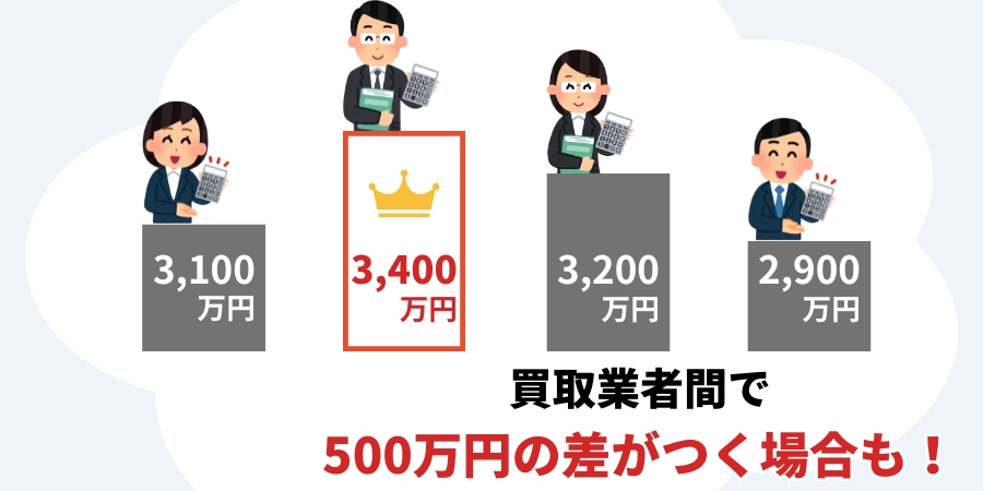 それだけに複数社に査定を比較しないと500万円近い差がつくこともあります。