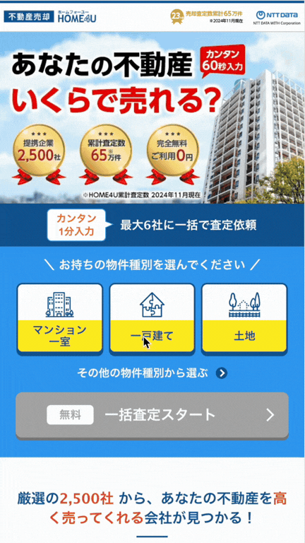 住所などを入力するだけで査定依頼でき、いくらで売れるかカンタンに分かります。