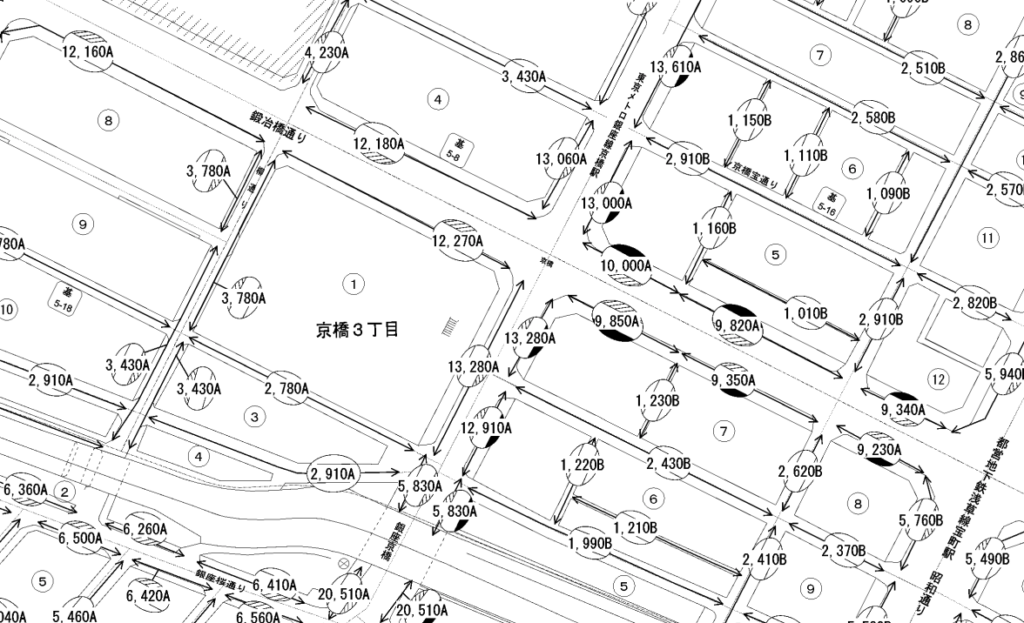 - 土地の路線価(税金の基準):